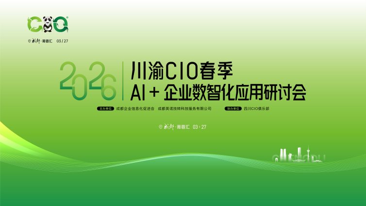 2026年3月27日,由成都企业信息化促进会主办,四川CIO俱乐部协办的“2026川渝CIO春季企业AI应用与数智化深化应用研讨会”在成都菁蓉汇顺利召开。本次研讨会汇聚川渝两地近200名CIO、服务商代表齐聚一堂,以“AI赋能、数智深耕”为核心,围绕企业数智化转型中的实践痛点、技术应用与未来趋势展开深度研讨,为川渝地区企业数智化深化发展凝聚共识、汇聚力量。
